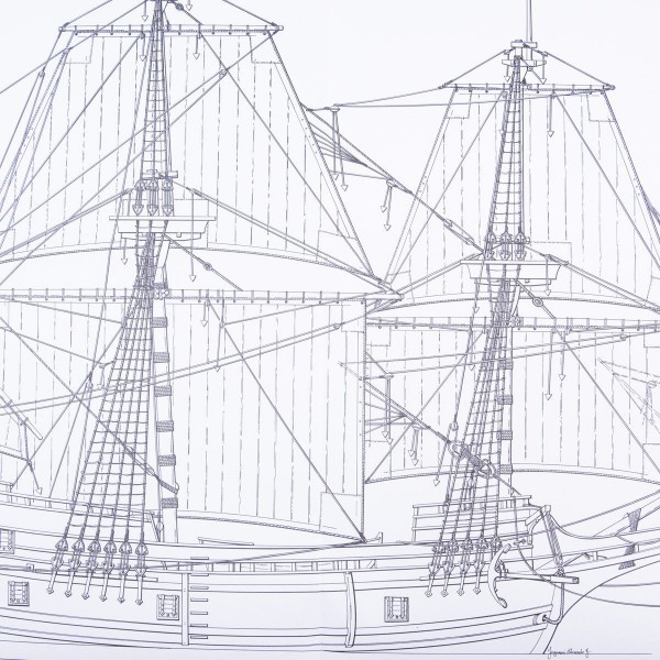 Plano de montaje Mayflower L: 65cm Escala 1:60.